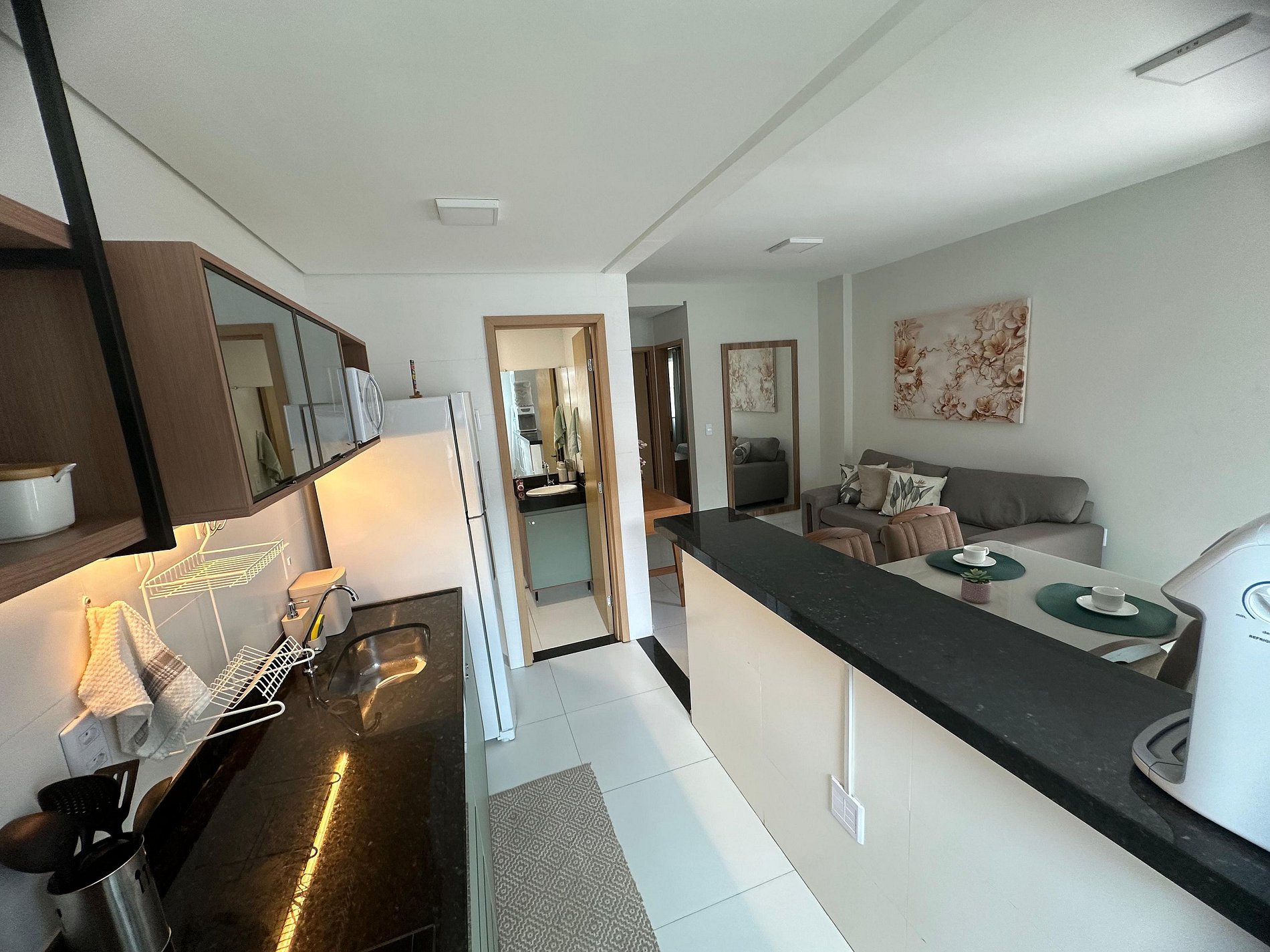 - Sala de Estar com cozinha integrada completa com utensilhos
